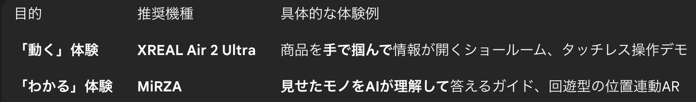 ARグラス比較:XREAL Air 2 UltraとMiRZAで実現する「動く展示」と「わかる展示」