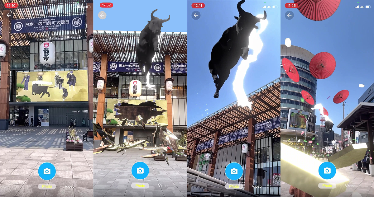そのため、ただ空間に物が浮いているだけでなく、現実の建物の形を活かした演出、例えば建物の裏や隙間から現れるといった表現も可能になります。長野駅を舞台にした案件で、壁から牛が飛び出し、実空間の柱をくぐりながら走るといった斬新なXR表現をIMG SRC STUDIOと実現できた時、「これはすごい」と手応えを感じました。そこからのご縁で、今回「TOKYO PROTOTYPE」に共同出展する運びとなりました。