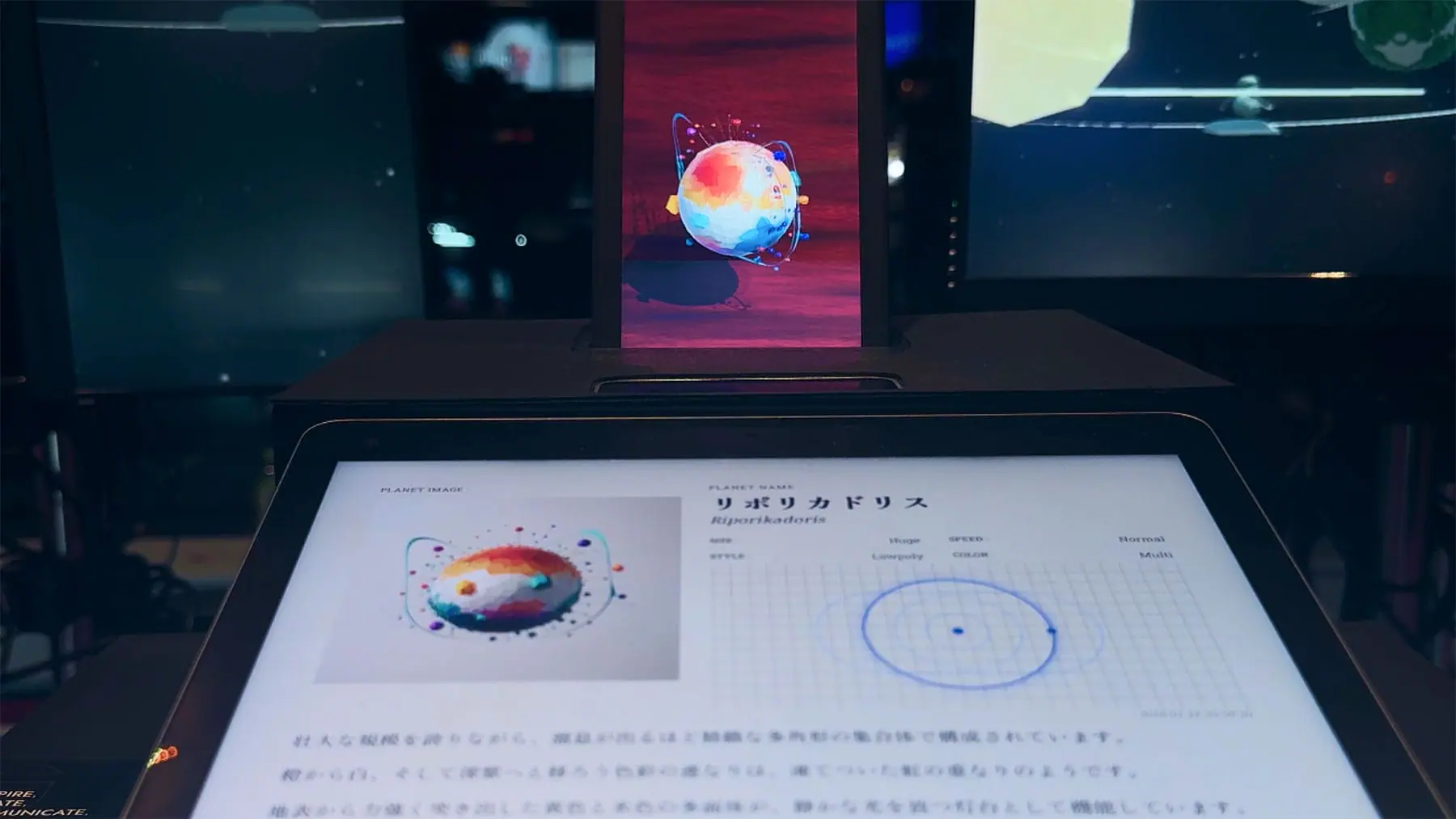 田中:この視線認識型ライトフィールドディスプレイの存在は大きかったです。自分が手描きした絵が、手元のディスプレイでリアルな立体になって浮かび上がる。このパーソナルな驚きがあるからこそ、自分が描いた星に対する愛着が湧く。そして、その星が大きな宇宙空間へと放たれていき、最大12個の惑星が回る太陽系の中で自分の星を探して没入していくという感情の導線をつくることができました。