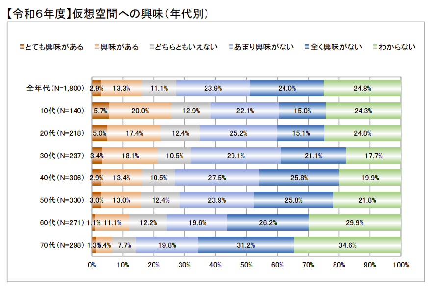 年代別の傾向を見ると、近年はバーチャルイベントやバーチャルショップなど、仮想空間を活用したサービスが増加しており、Z世代は特にこうした新しいデジタル体験への関心が高いことがわかります。