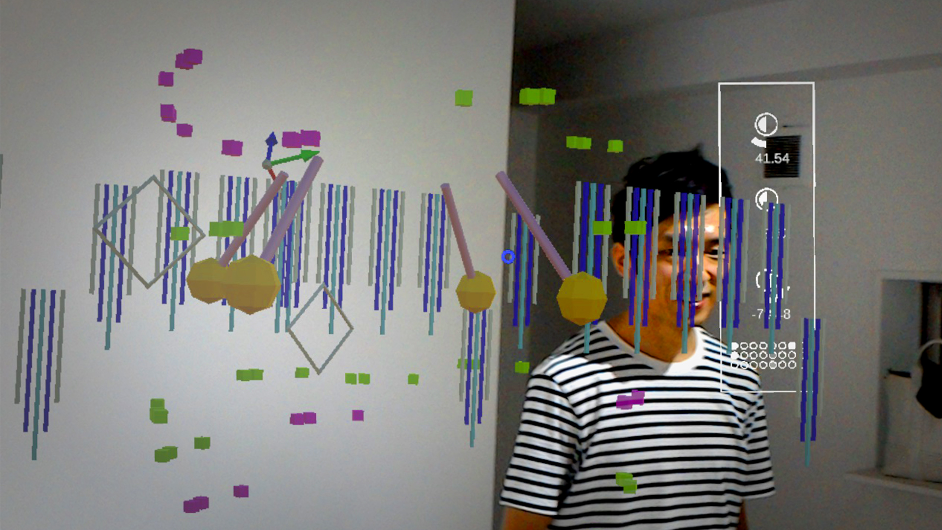 今回は、音や映像、インタラクションなど、HoloLensの特徴を探り、今後の方向性を定めるアンカーとしてのプロトタイピング。HoloLensを触る中で課題として感じたのは、視野角の小ささとインタラクションの種類の少なさだった。