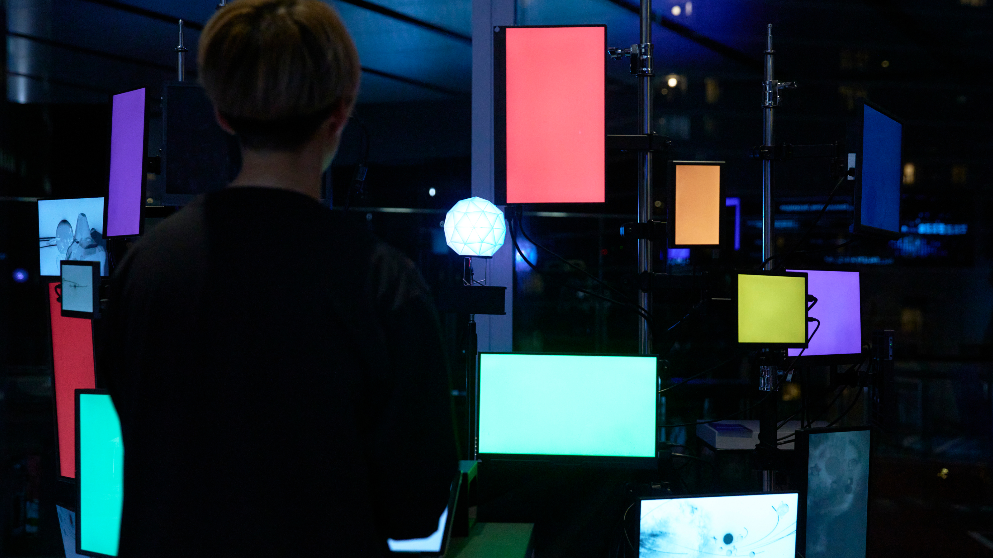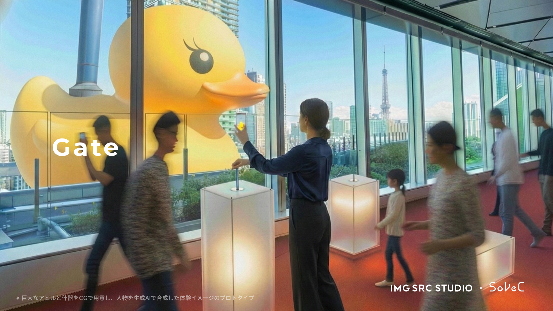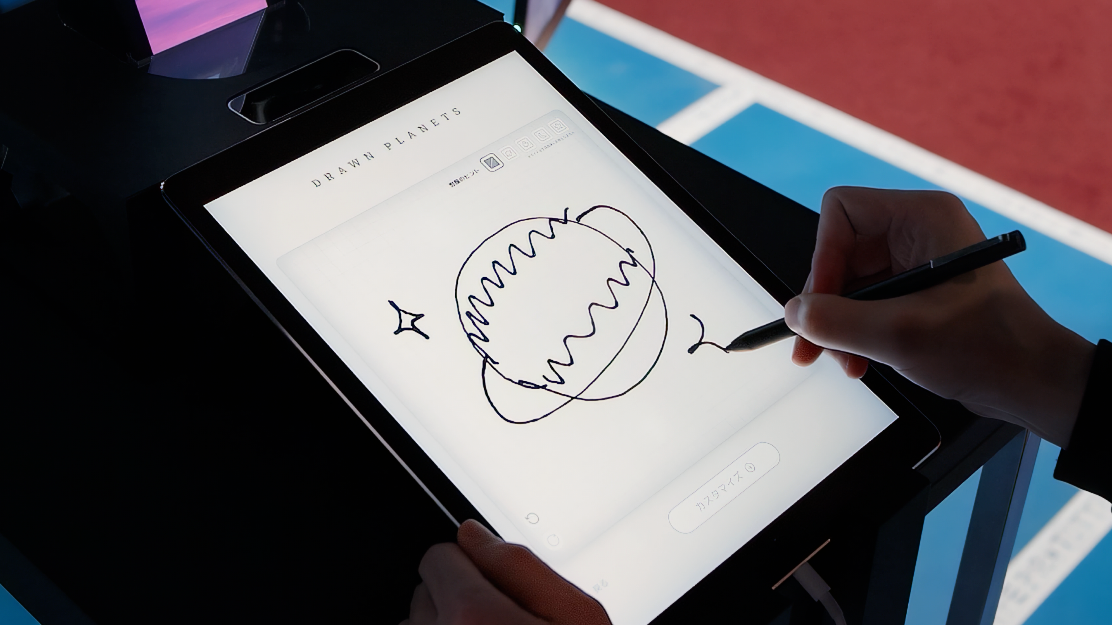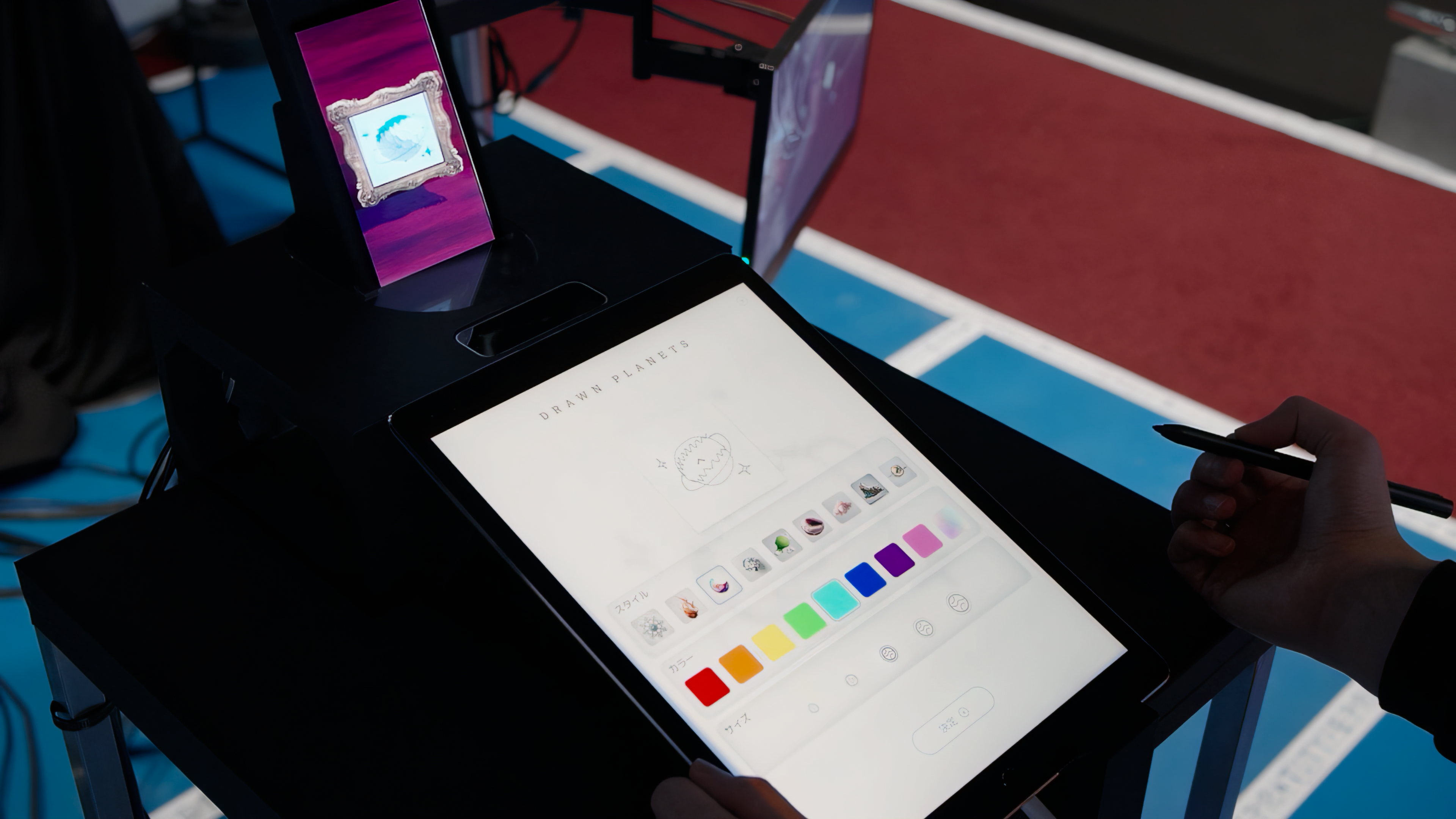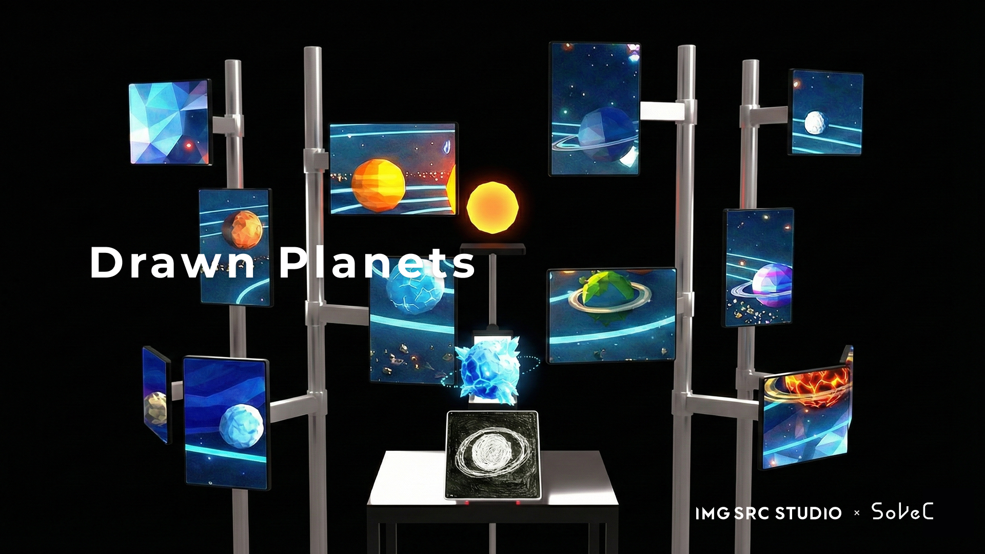 体験者が描いたスケッチを生成AIが即座に3D惑星へ変換し、新たな宇宙を構築する参加型インスタレーションです。分散配置されたディスプレイ群を「断片的な視界」として提示し、その間の余白を脳が補完する「知覚的統合」を利用して、デバイス不要のXR空間を生成します。体験者が空間を歩くことで、物理空間を共有しながらも、体験者ごとに異なる世界が見える、多層的な共有体験を提示します。
