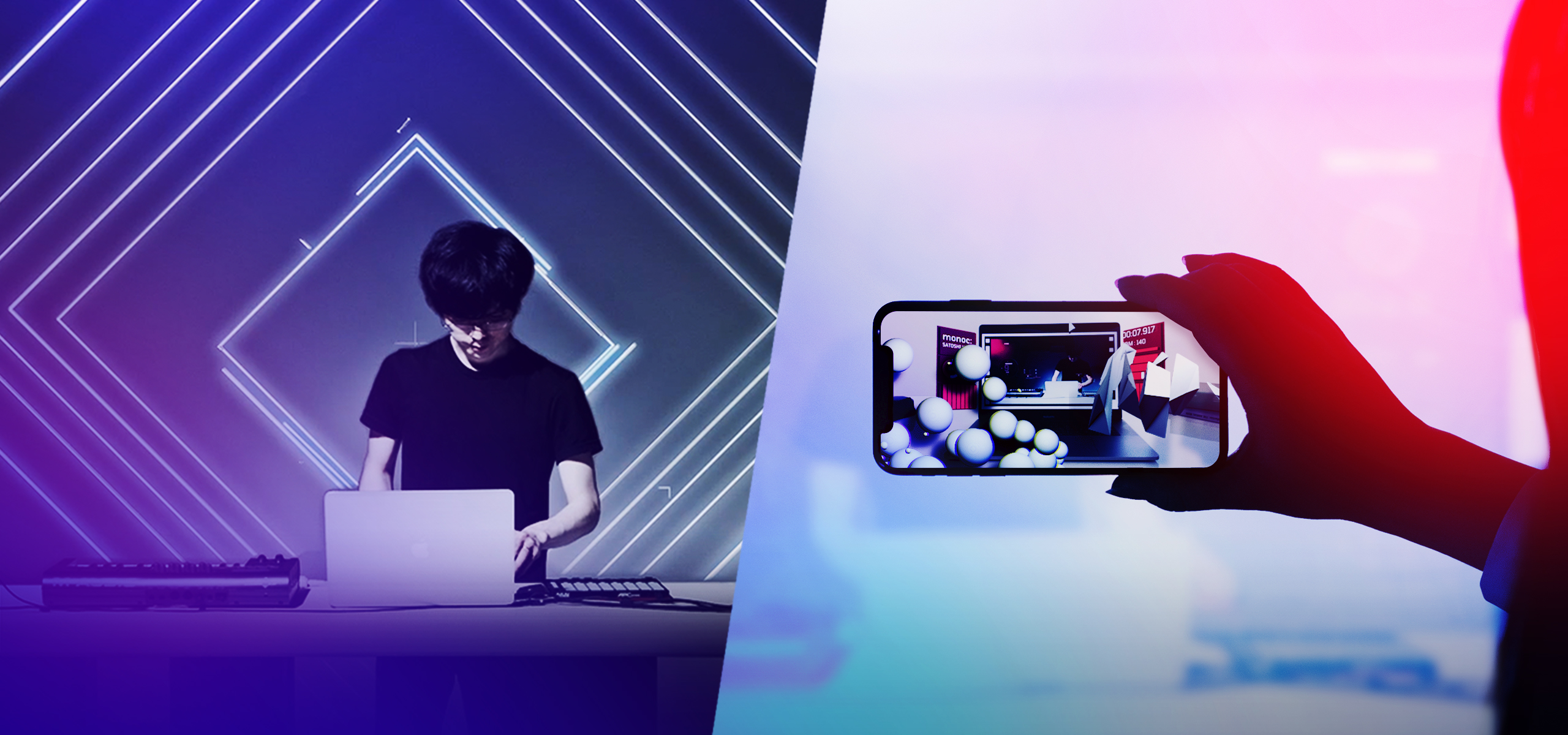ライブ配信を拡張する取り組み『LIVE/AUG』。第一弾として、独自の同期システムを構築し、ARとライブ配信の融合を試みています。自宅などリモート環境での視聴を、より価値のある「体験」として昇華させることができます。IMG SRC STUDIOがこれまでR&D/プロトタイピングで取り組んできた映像とARとの同期に関する独自技術を、リアルタイムなライブ配信に対応させることで、Withコロナ時代の新しい生活様式に適応した「新たなライブエンターテインメント体験」を開拓していきます。