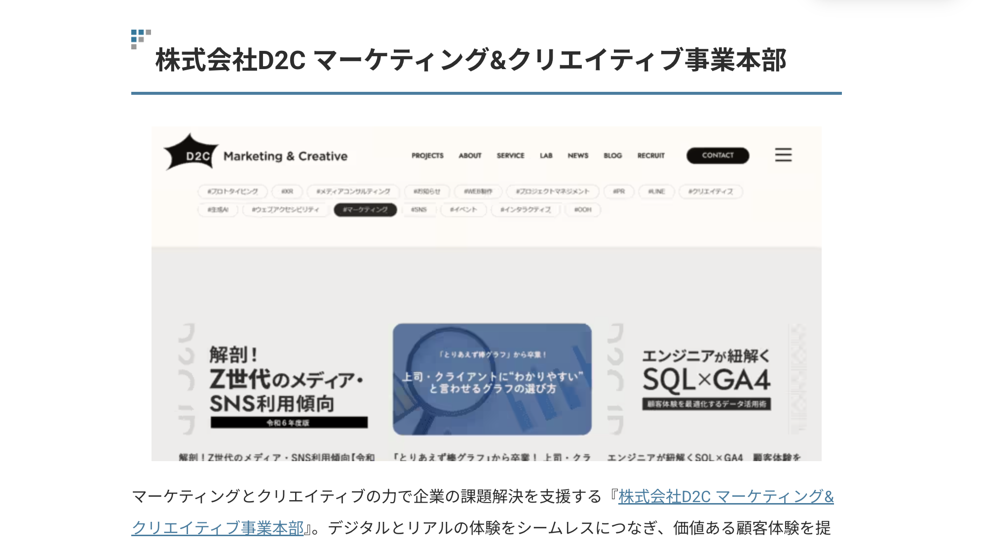 フリーランスエンジニアのお役立ちコンテンツ「レバテックフリーランス」の記事「Webマーケティングで結果を出す!成長したいマーケターに役立つブログ」にて、D2Cマーケティング&クリエイティブ事業本部のBLOGをご紹介いただきました。