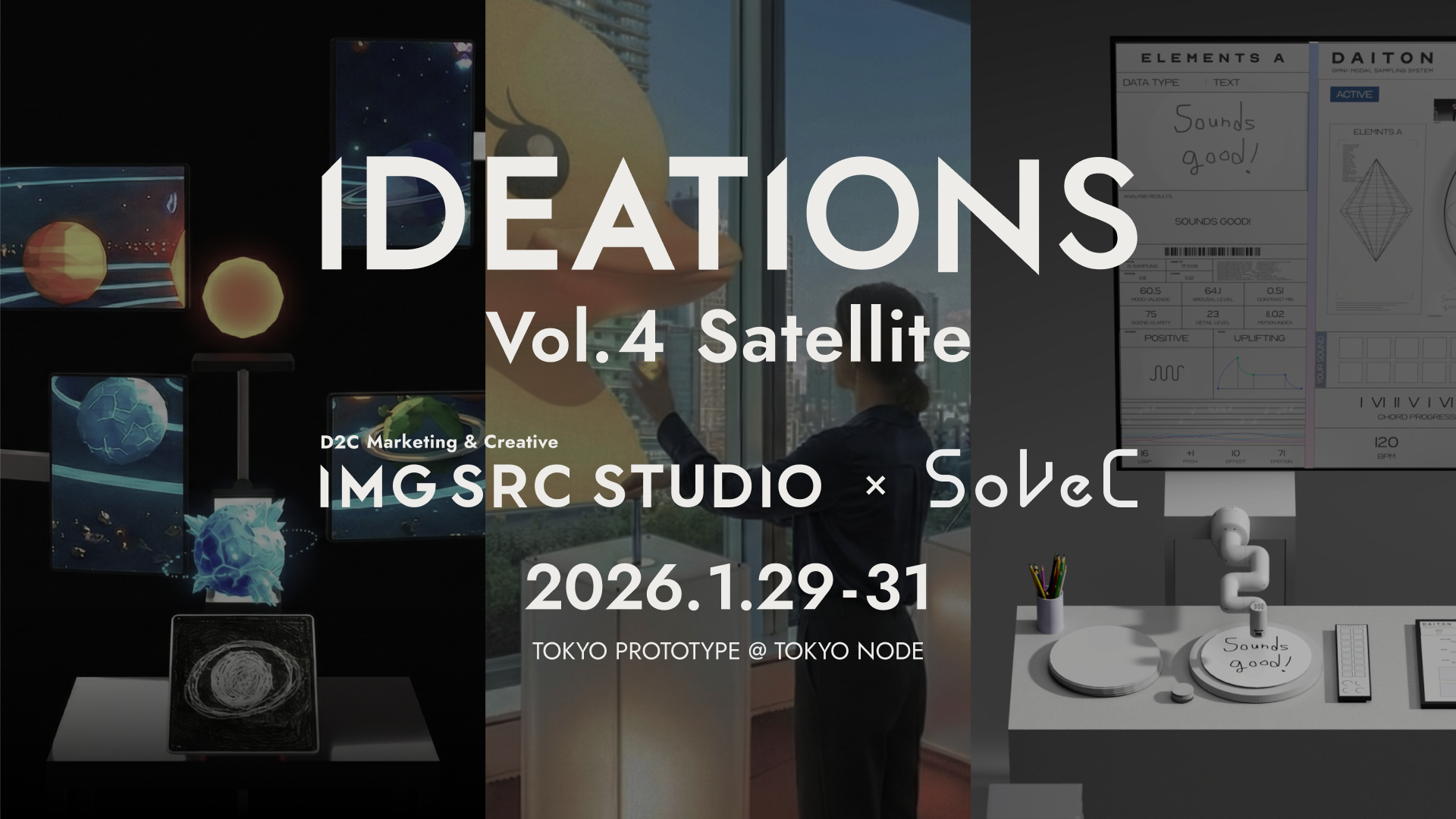 本イベントでは、当社が2022年から毎年開催し、多くの方にご来場いただいているクリエイティブ×テクノロジーの共創展示「IDEATIONS Vol.4 Satellite」として出展。