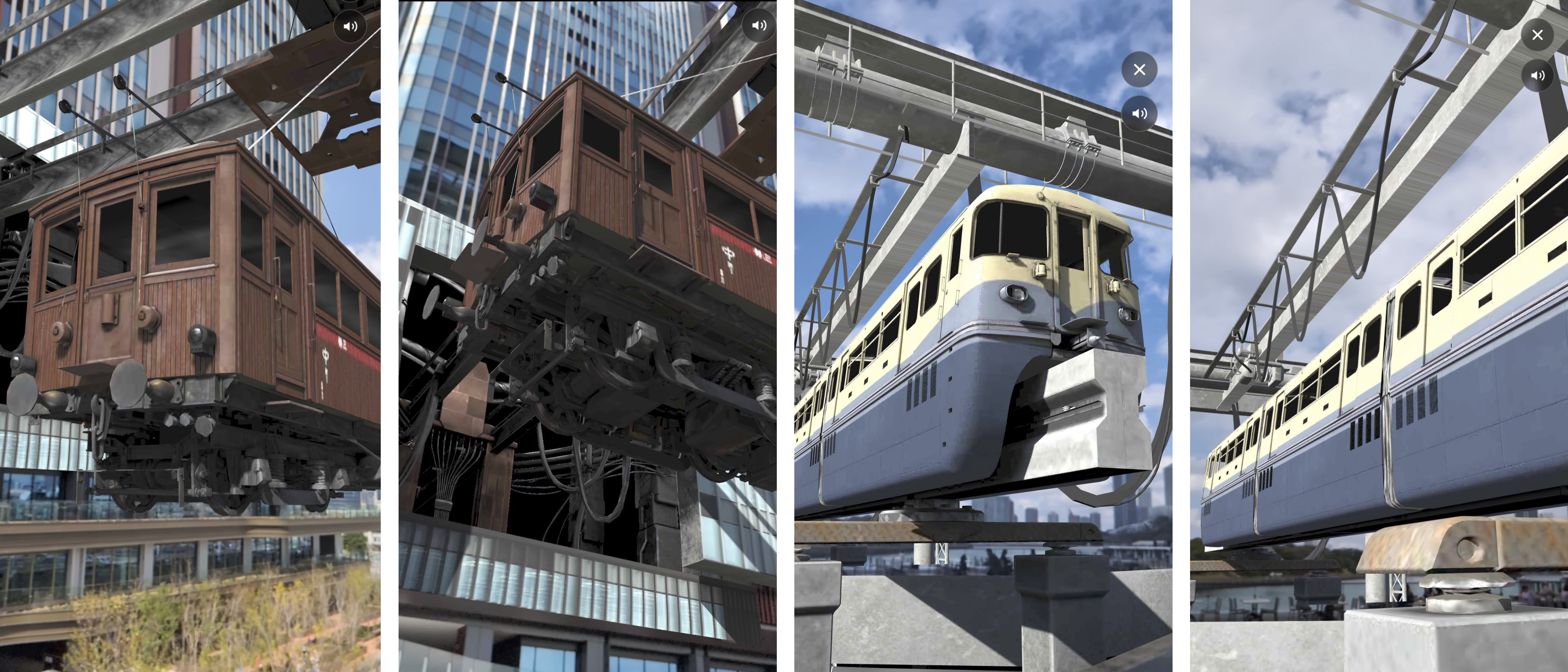 街の歴史と鉄道文化を象徴する「ナデ6110形(旧山手線車両)」および「東京モノレール100形」をXRで再現し、スマートフォンをかざすだけで3DCGでリアルに再現された大迫力のAR車両をお楽しみいただけます。