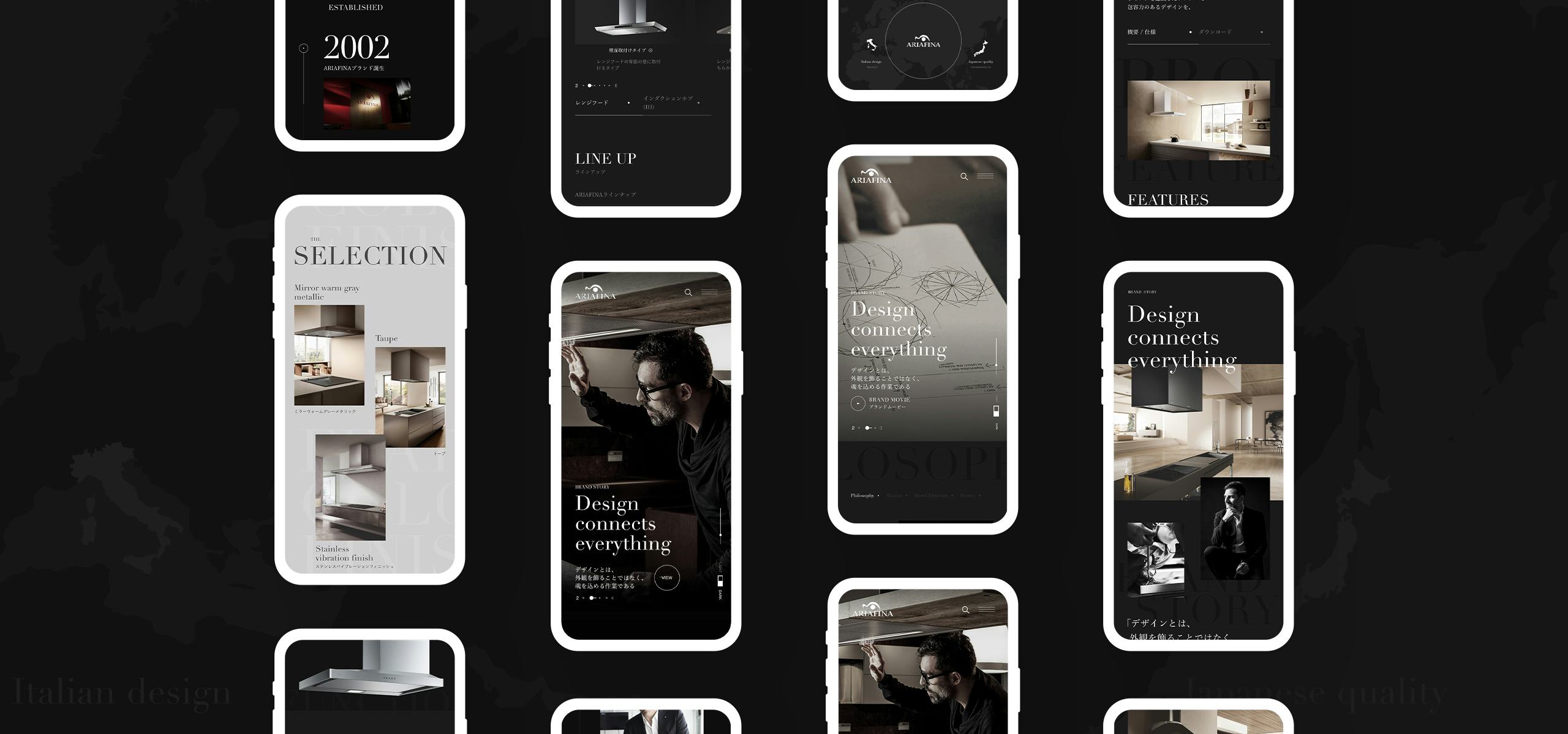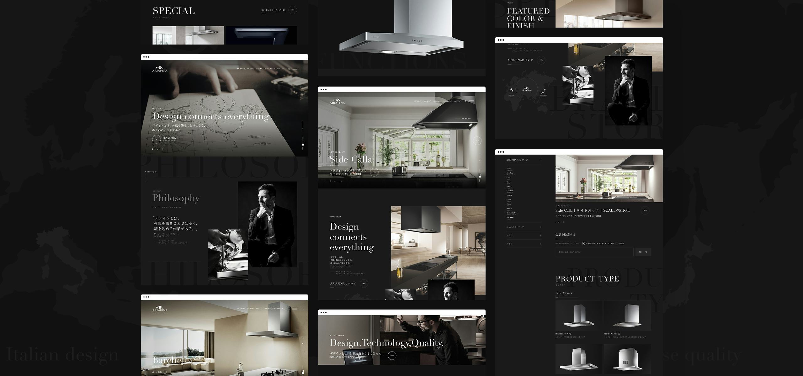 今回のリニューアルプロジェクトでは、既存顧客となるオーダーキッチンメーカーや建築家などのプロユーザーと一般のエンドユーザーに加え、これからブランドを知る新規ユーザーに向け、「ARIAFINA(アリアフィーナ)」をハイエンドでプレミアムなブランドとしてあらためて認知・浸透させる事をプロジェクトゴールとして定め、「ブランドの世界観を感じながら必要な時に、必要な情報が取得できるユーザーファーストなツール」として、Webサイトがブランド体験のハブとなる様に、全体のクリエイティブを設計していきました。