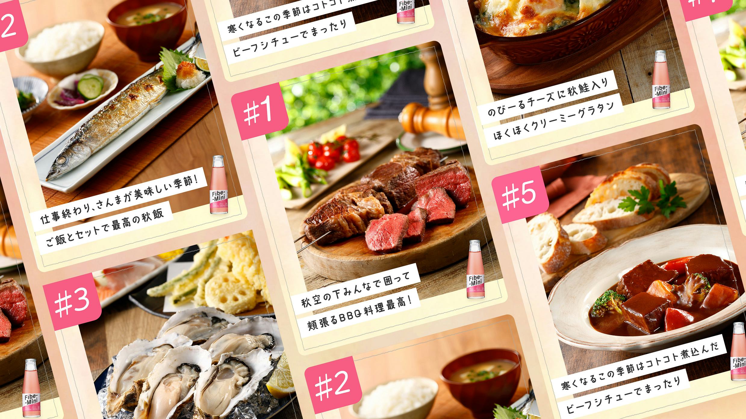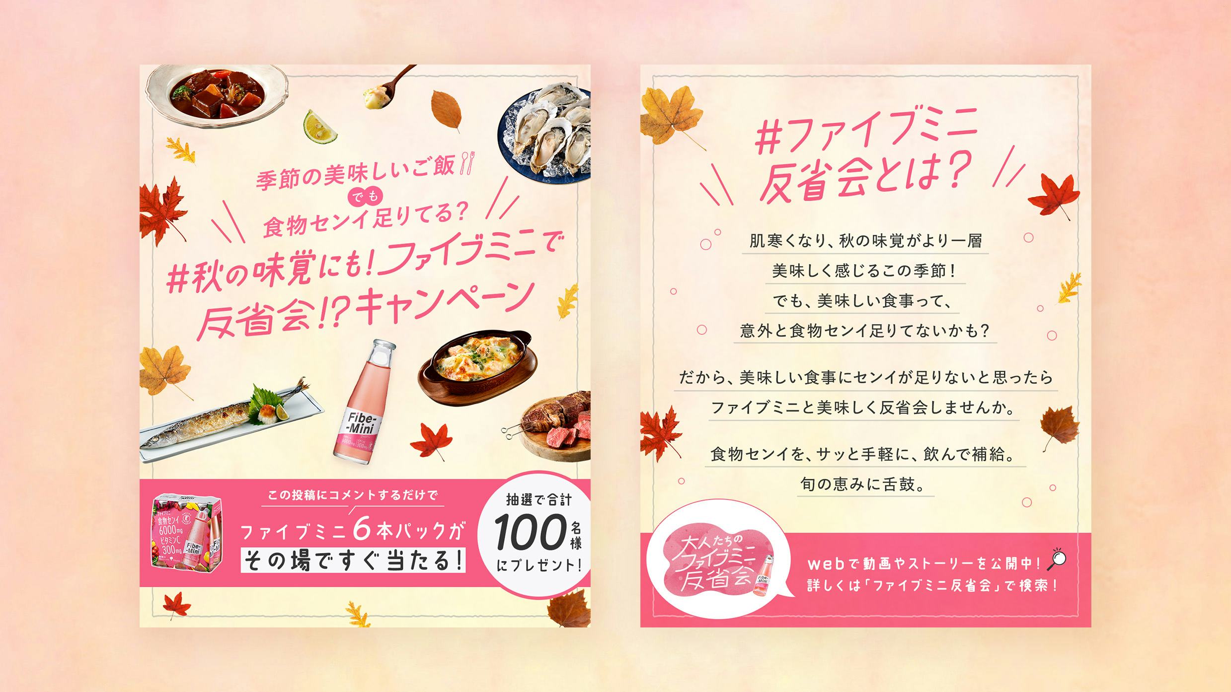 秋の味覚で何食べたいかを回答してもらい、その場でファイブミニ6本パックが当たる施策となっている。