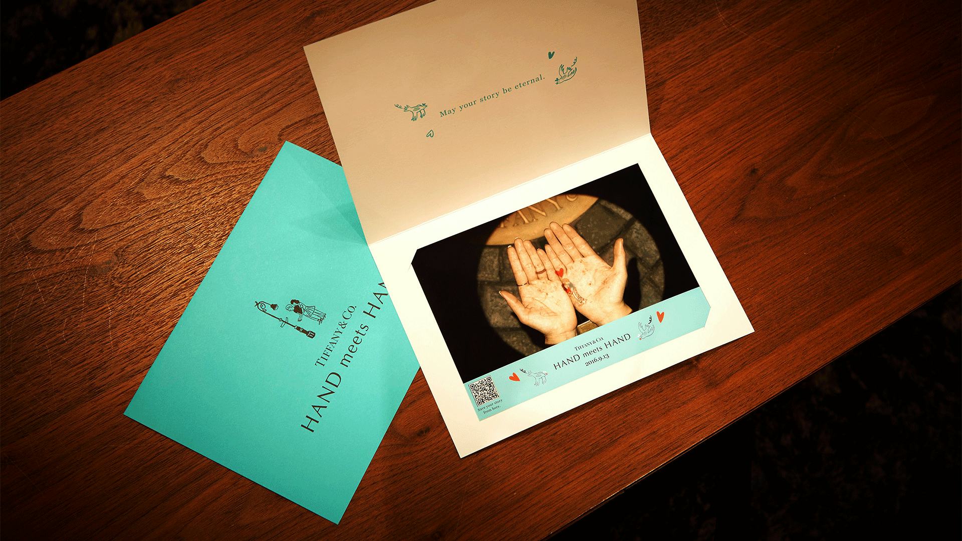 世界で最も有名かつ愛されているエンゲージメントリング、ティファニーセッティングの誕生130周年を記念して、ティファニー銀座本店にて特別な体感型インスタレーション「Hand meets Hand」(ハンド ミーツ ハンド) を2016年9月14日〜11月1日に開催しました。恋は、ふたりの手がふれあったときにはじまり、その愛の誓いはやがて、ふたりの手にリングとして宿っていく…。ふたりの手を絵本に見立て、そんな物語が展開されます。