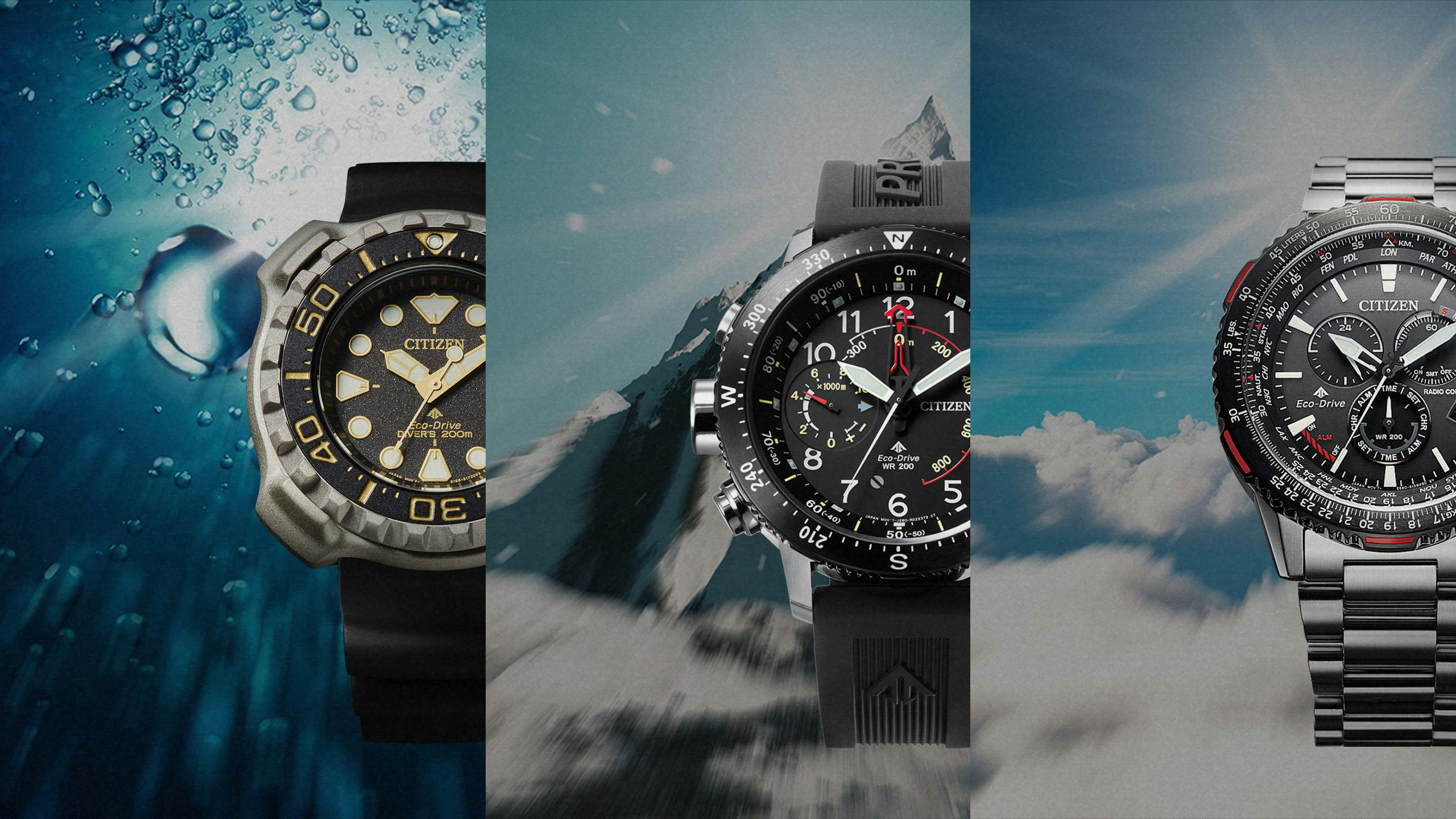 「PROMASTER(プロマスター)」は、CITIZENがグローバルに展開するスポーツウオッチブランドです。1989年の誕生以来、 MARINE(海・ダイバーズウオッチ)、LAND(陸・フィールドウオッチ)、SKY(空・パイロットウオッチ)の3つのフィールドで、世界中の冒険者達とともに限界を超えた挑戦をし続けています。